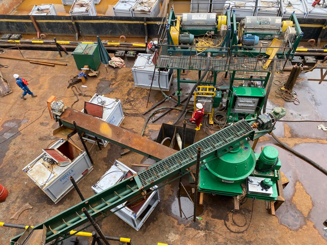 During drilling process, solids control & Drilling waste management are combined solutions to recover and reuse the valuable drilling fluids. Solids control forms close-loop drilling mud cleaning and separating procedures, to ensure the smooth drilling and safe drilling. The solids control recovered most of the valuable drilling fluids for reuse. However, there are still lots of valuable oil-based mud can be recovered by drilling waste management equipment and system. Compared with the additional cost on the drilling waste management equipment, the economic value of recycled OBM is still considerable. That is the reason almost each rigsite will be equipped with 1set vertical cuttings dryer and high speed ultra-fine solids removal decanter centrifuge. After treatment by Vertical cutting dryer, the fluids discharge can be introduced to high-speed centrifuge to further remove the fine solids in the drilling mud. After centrifuge separation, the clean mud can be introduced back to the solids control mud system for reuse. And this is the end point of the drilling waste management system.