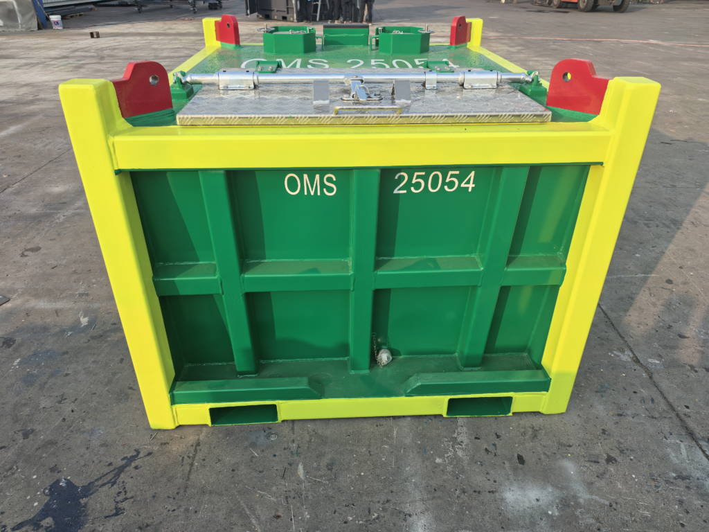 Offshore Mud Skip is popular applied in offshore drilling industry and other offshore industry. The size/volume of mud skip is customized per customer requirement. The roof normally should be Aluminium material for for lightweight and easy opening and closing. Four sides forklift holes will be designed for easy movement; Polyurethane Anticorrosive Paint for Marine Box, much longer lifetime. We can also customize 20ft cuttings box, size similar to 20ft container. KES Separation offers not just the cuttings boxes and containers, but a bespoken turn-key solution for the entire drilling waste management loop.